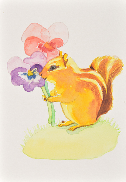 ▲2023年11月号 Wancha「Welcome リスのいる森へ」2017年 127×89mm 鉛筆、透明水彩、紙