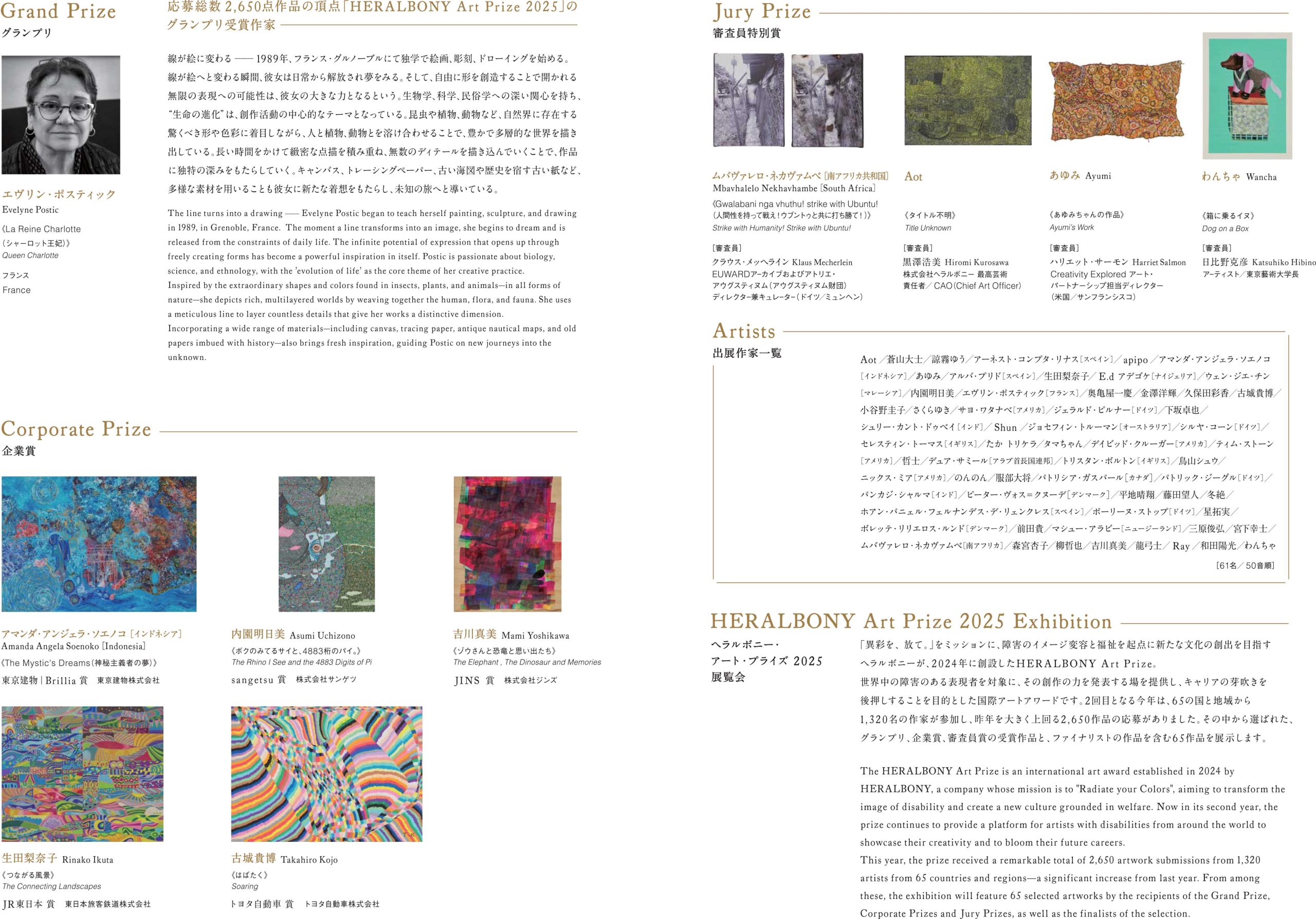 国内外の障害のある作家を対象とする国際賞として、2024年に創設された「HERALBONY Art Prize (ヘラルボニー・アート・プライズ」。